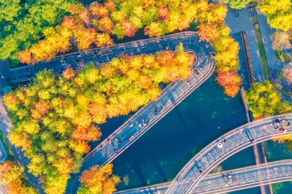 ▲水杉红了,福道色彩斑斓(陈捷阳摄)