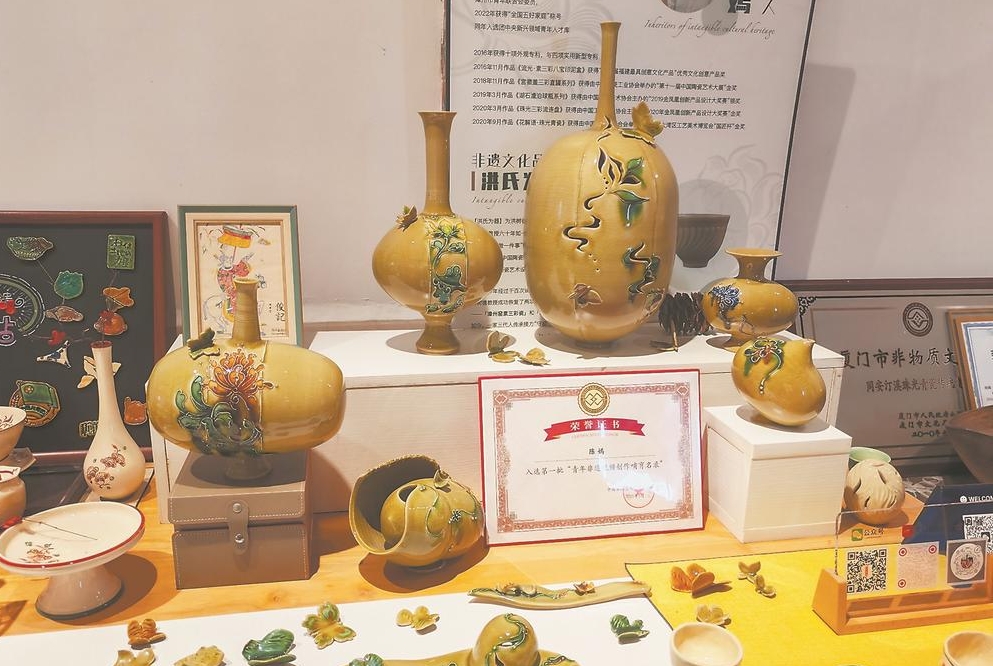 1999年,福州大学厦门工艺美术学院教授洪树德复刻了失传近400年的漳州窑素三彩烧制技艺,其后代接力“守窑”,不仅让素三彩重现风华,更以创新姿态融入现代生活。