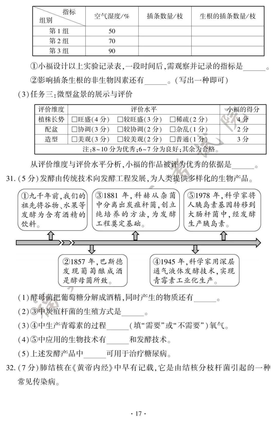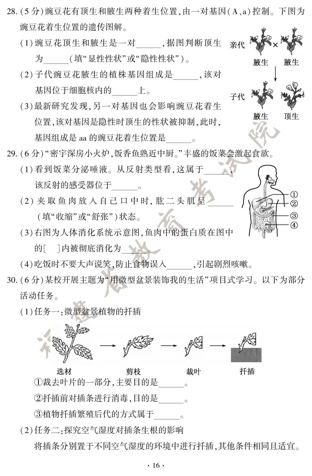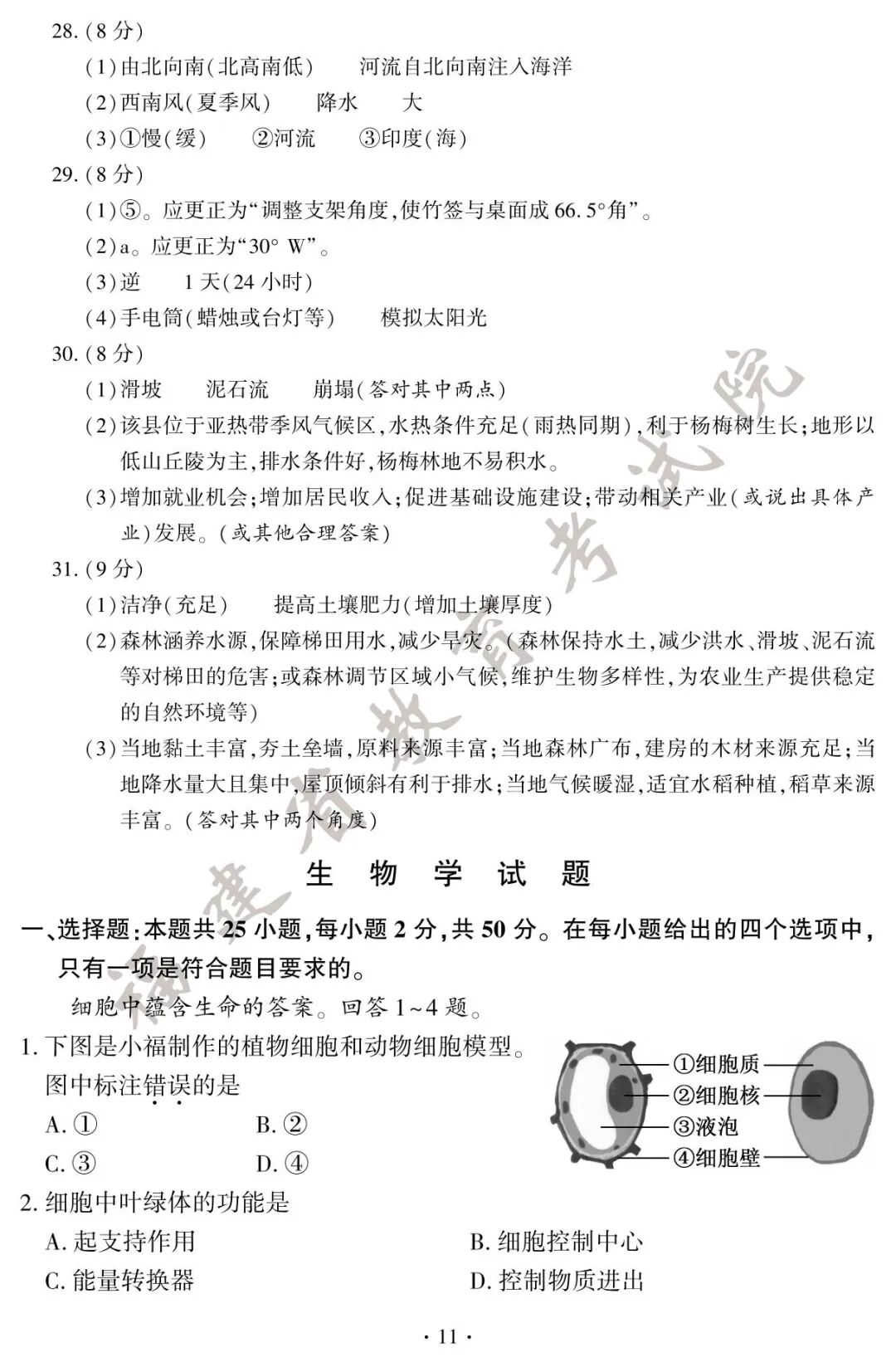 初二地理、生物小中考试卷