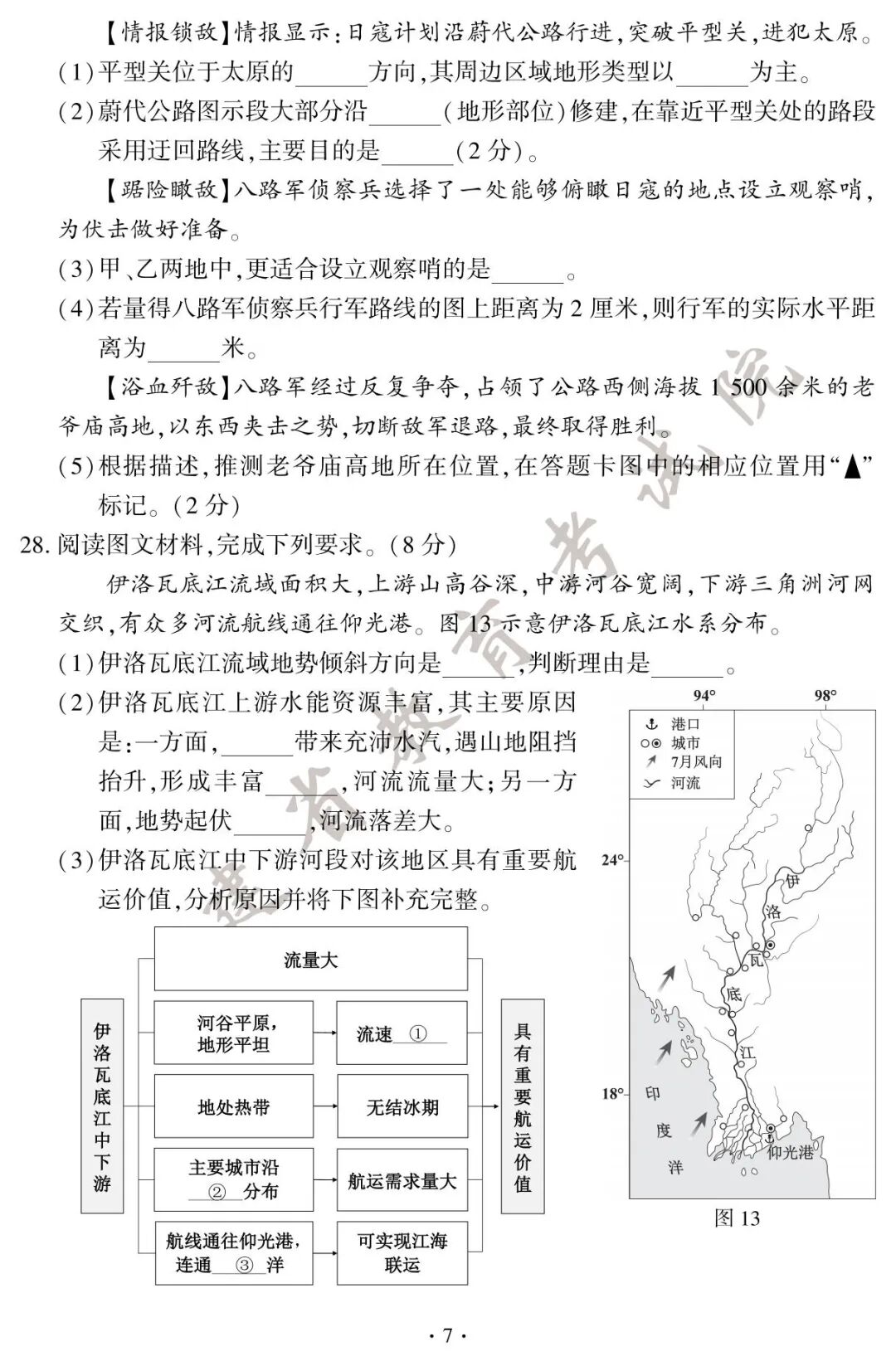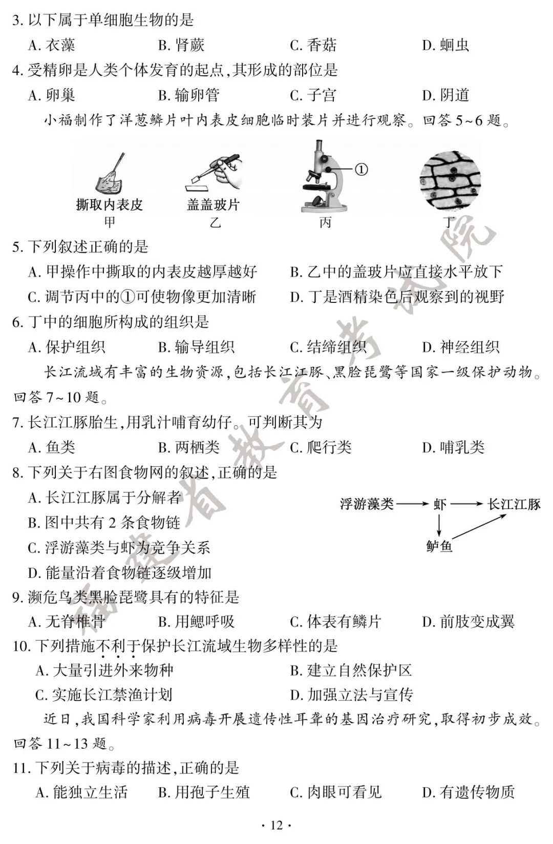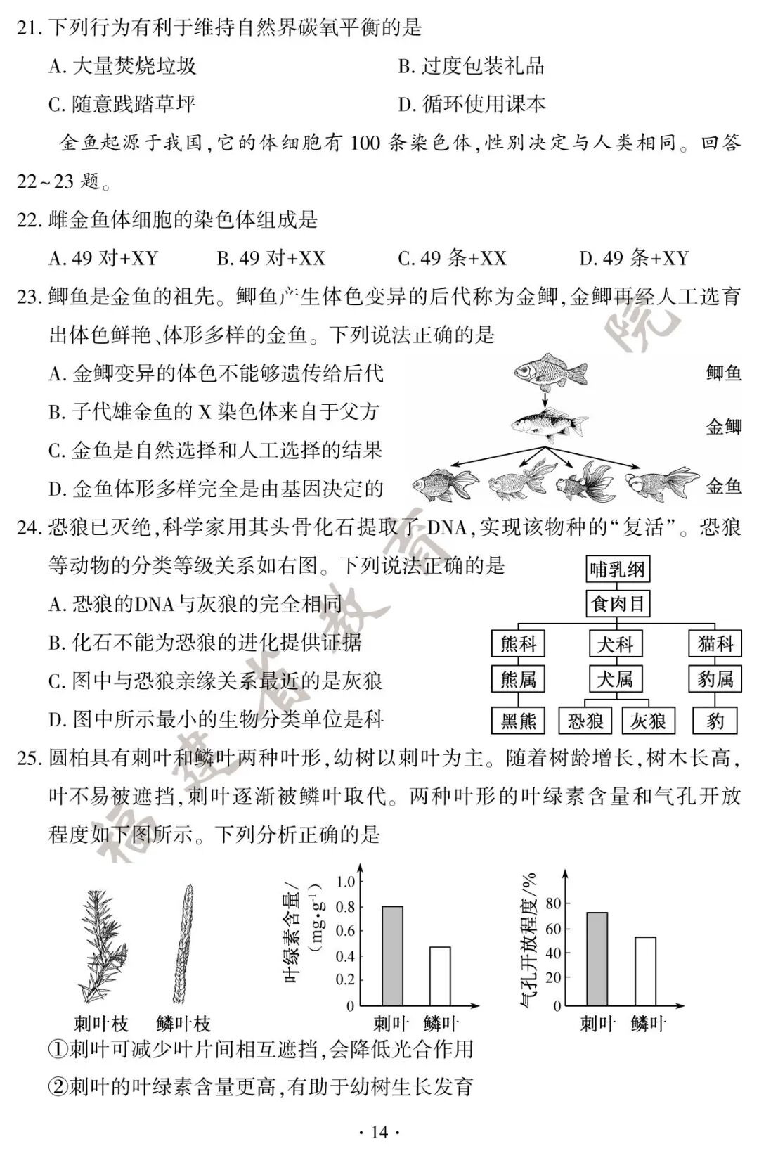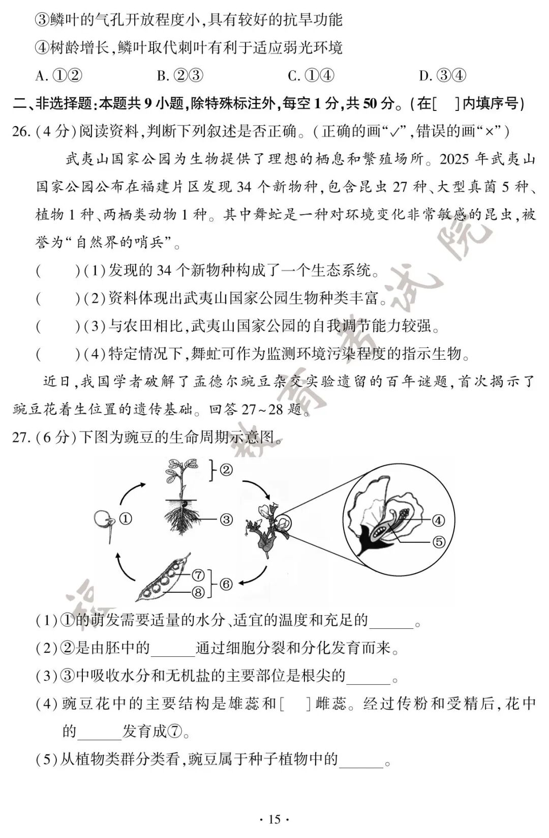 初二地理、生物小中考试卷