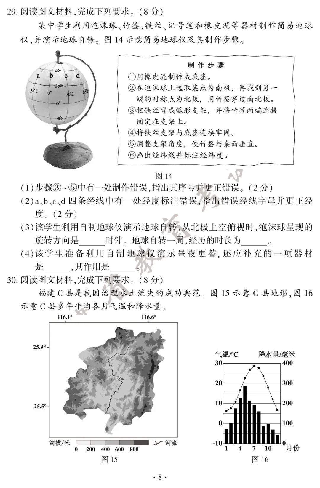 初二地理、生物