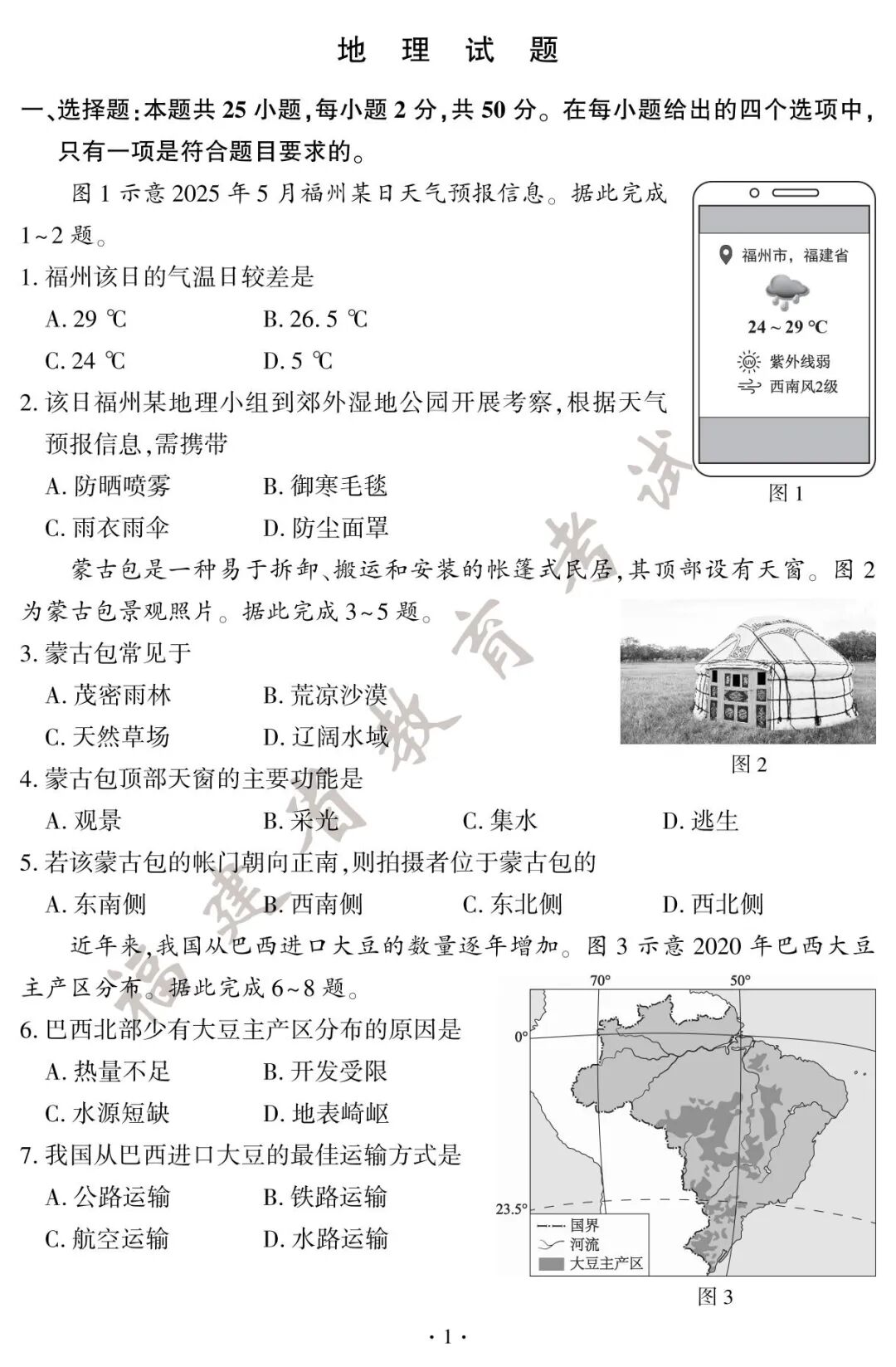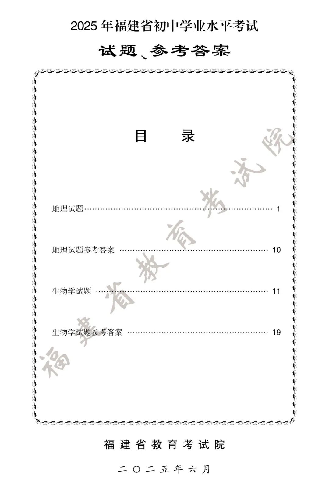 2025年福建中考试卷及答案发布!