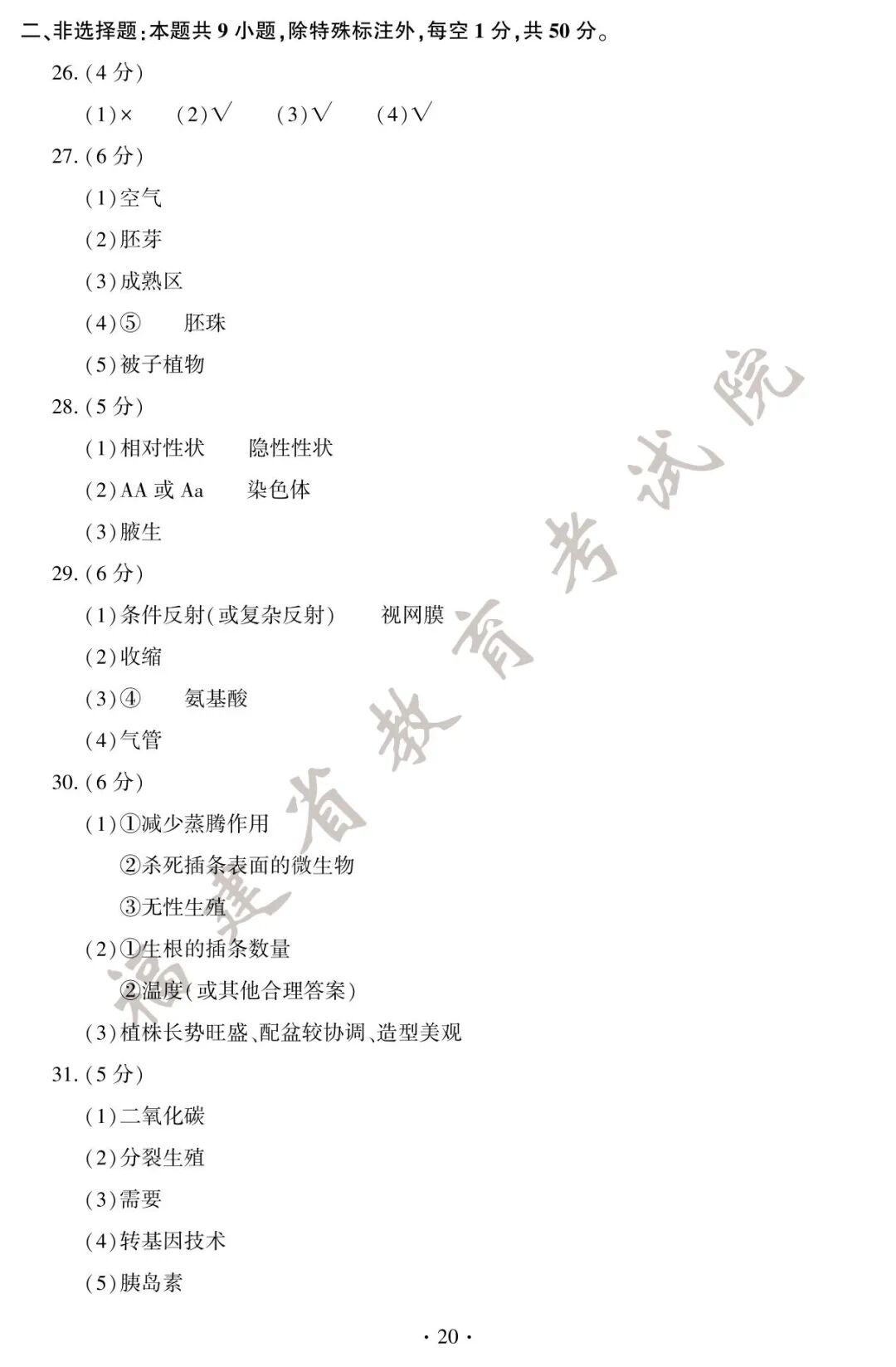 中考试卷及答案
