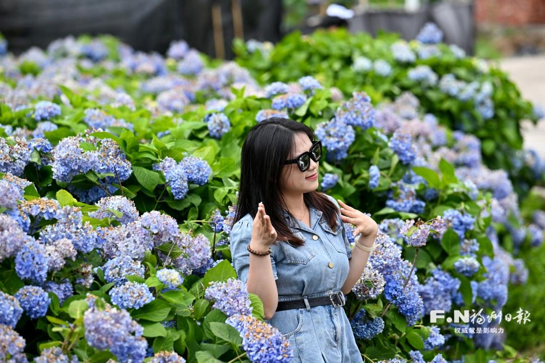 百亩绣球花竞相绽放,蓝的、白的、粉的……各色绣球花交织成一幅绚丽多彩的画卷,将村庄装点得如诗如画。19日,“绣球漫山野 醉入无尽夏”——闽侯县廷坪乡第二届绣球花文化旅游活动,在汶合村良地自然村举办。