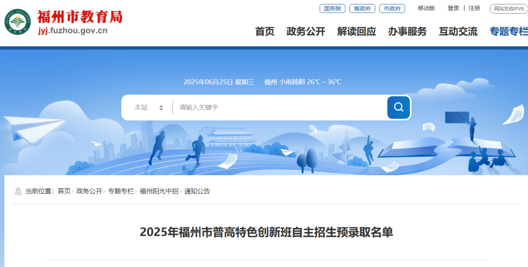 最新消息!福州市教育局官方网站公布《2025年福州市普高特色创新班自主招生预录取名单》,详情如下↓
