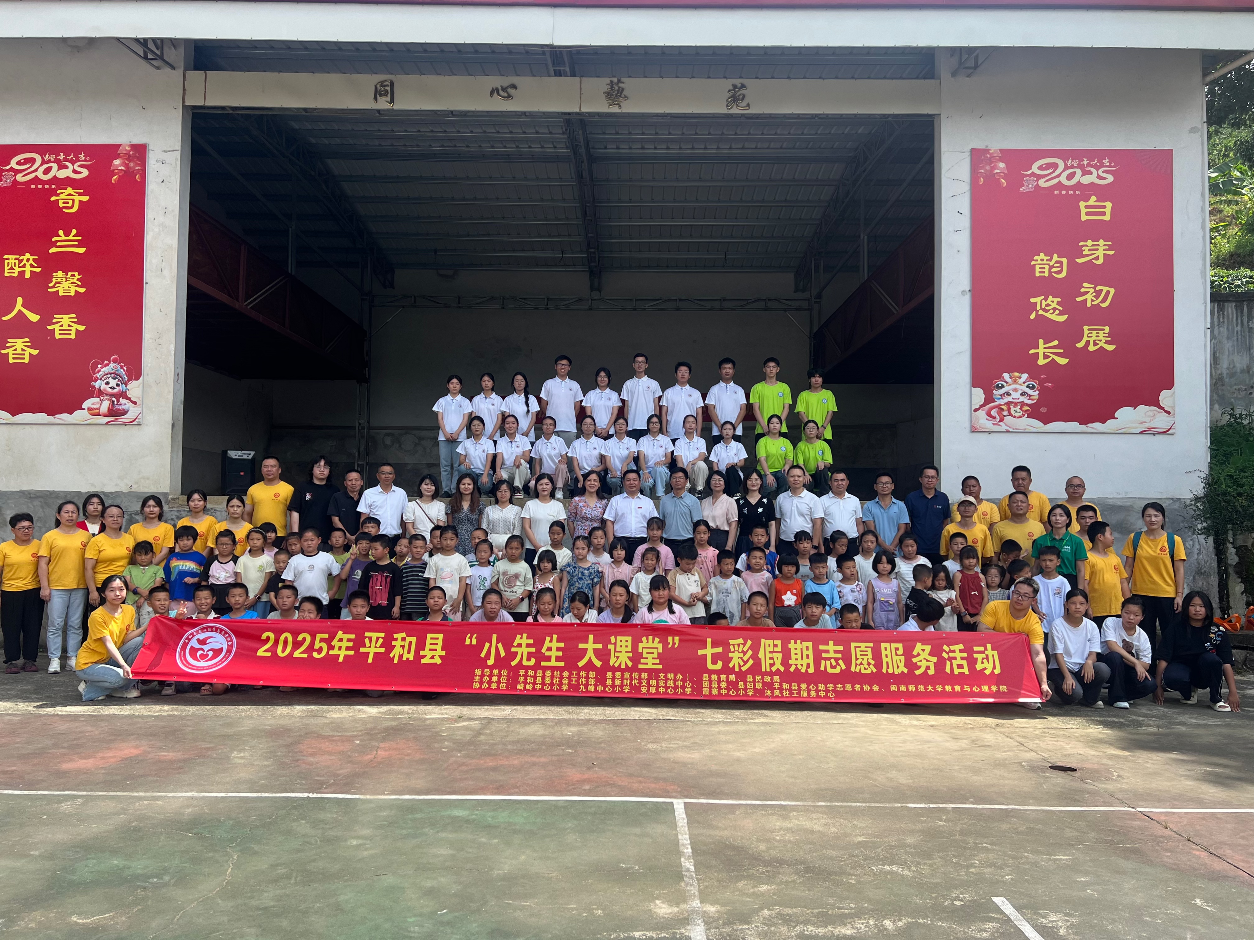 福建日报-新福建客户端7月8日讯(朱金墩)7月7日上午,2025年平和县“小先生,大课堂”七彩假期志愿服务文明实践活动启动仪式在崎岭乡彭溪小学举行。本次活动由县委社会工作部、县委宣传部(文明办)、县新时代文明实践中心、团县委、县妇联与闽南师范大学教育与心理学院、平和县爱心助学志愿者协会联合主办,县教育局、县民政局等部门指导支持,崎岭乡、九峰镇多所中心小学、厦门沐风社工中心等参与协作。主会场彭溪小学与钟腾小学、龙门小学、福山小学3所分会场同步启动,为期一个月的暑期志愿服务文明实践活动在庄严的国歌声中正式拉开帷幕。