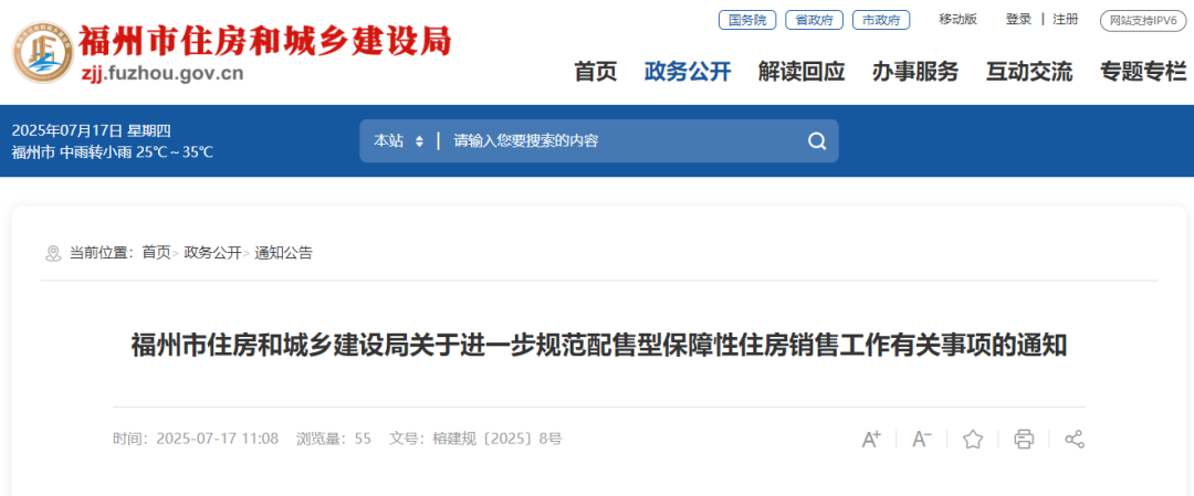 今天,福州市住房和城乡建设局发布关于进一步规范配售型保障性住房销售工作有关事项的通知。