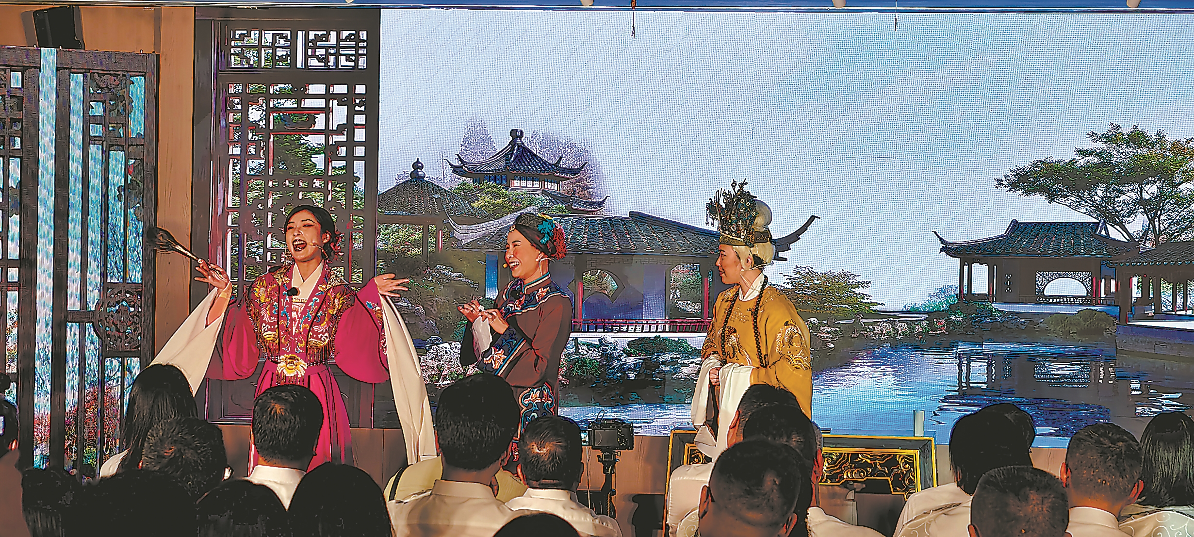 福建芳华越剧院演员表演脱口秀《清新福建大观园》。