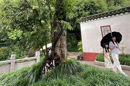 七月,当荔枝迎来丰收季,同属闽都夏果的龙眼也正悄然膨果。在福州西湖公园开化寺前的古龙眼树上,累累果实如翡翠缀满枝头,与明代古刹的飞檐翘角相映成趣,成为夏日里一道独特的景观。