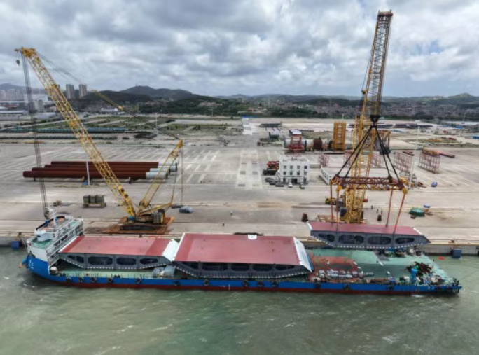 25日,记者从平潭港务发展有限公司获悉,7月18日至24日,平潭金井港区顺利完成中铁宝桥承接的厦金大桥(厦门段)G3标段首批次13件小节段桥梁钢箱梁的集港卸船。