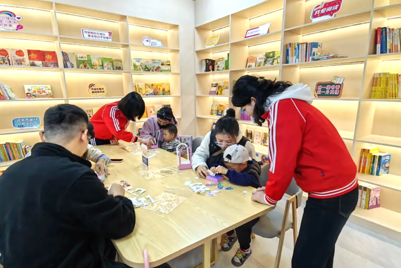 教师志愿者在檀悦“党建+”邻里中心开展早教进社区活动。
