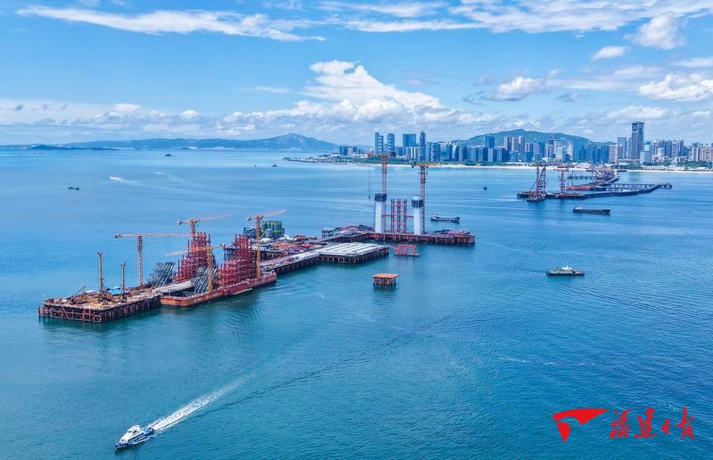 正值盛夏,厦金大桥(厦门段)施工现场如火如荼,海陆工程同步发力。这座19.6公里的跨海通道,正由3000余名建设者,用智慧与汗水浇筑。