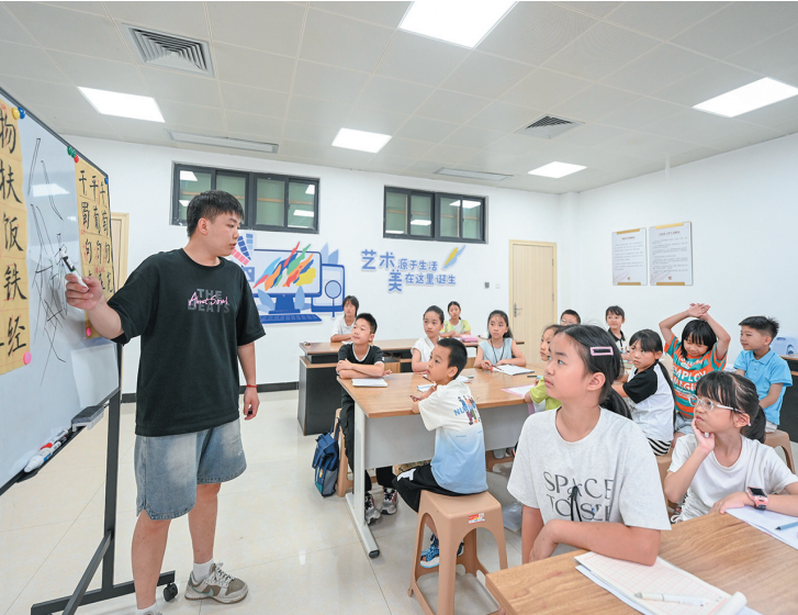 这是郑芷昀这个暑假第15次参加书法课。“孩子的积极性很高,前一天刚上完语训课,第二天就接着练书法,暑期生活特别充实。”看着女儿专注的身影,家长林香钦十分欣慰。