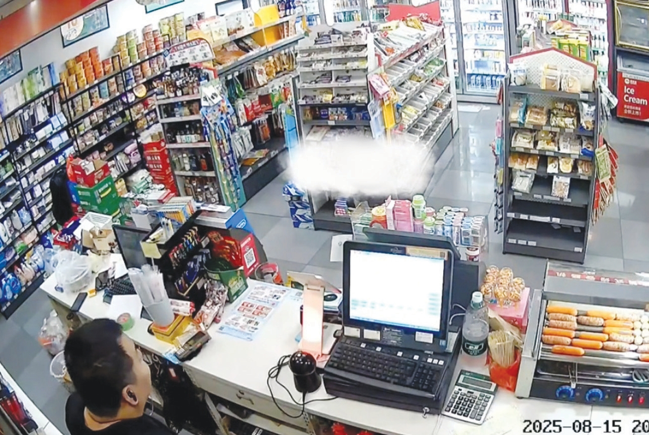 超市监控视频显示,8月15日20时33分,一个穿深色卡通图案T恤的男孩,背着蜘蛛侠书包,来到超市柜台前,对着徐先生说:“老板,给我两个塑料袋。”