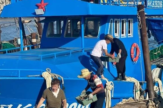 记者在位于漳港街道的三营澳码头看到,一艘艘渔船缓缓靠岸,船上渔民齐心协力,将一筐筐海鲜从船上卸下,有活蹦乱跳的虾蟹、新鲜肥美的海鱼……种类繁多,让人目不暇接,空气中弥漫着大海丰收的气息。码头上,渔民与商贩的交易声此起彼伏,电子秤的“嘀嘀”声与冰块撞击泡沫箱的脆响交织,构成了开海后最质朴的丰收序曲。