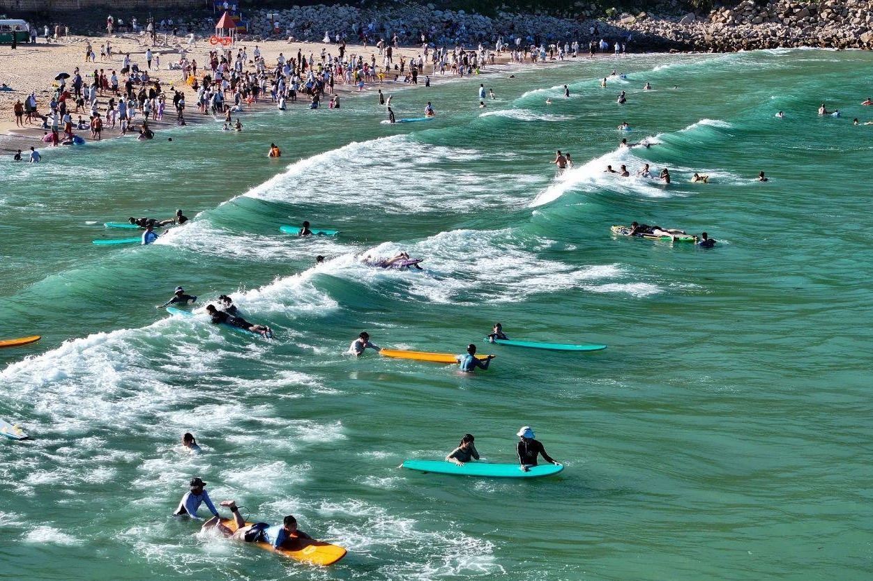 ▲游客在下沙尽情玩耍。林双伟/摄