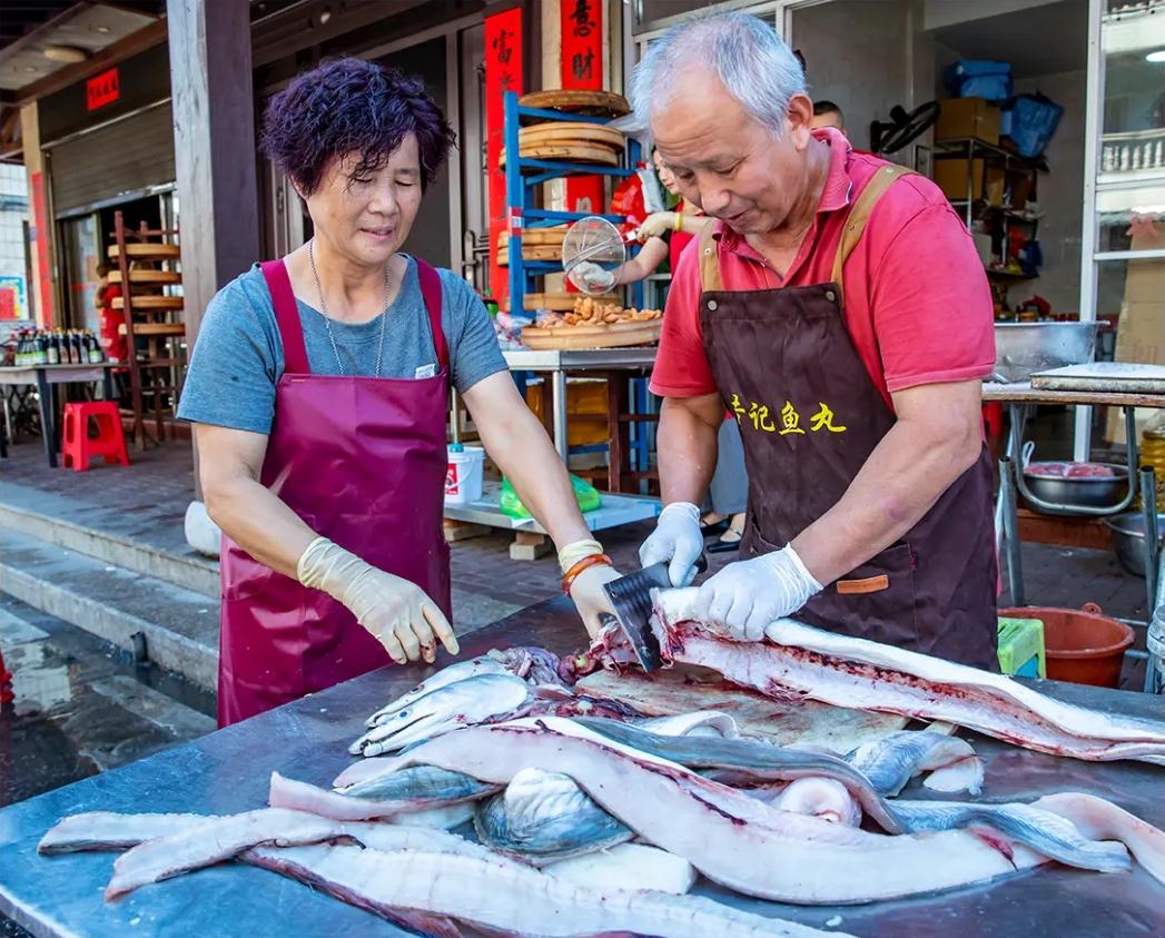 在连江筱埕镇定海村,黄家象夫妻二人经营着一家海鲜特色小吃店。这些年,随着定海古城旅游业的发展以及连江环马祖澳滨海旅游度假区的出圈,店里的生意越来越红火,外表酥脆、鱼肉甜软的炸糟鳗更是成为八方游客吃过一次就会爱上的美味。