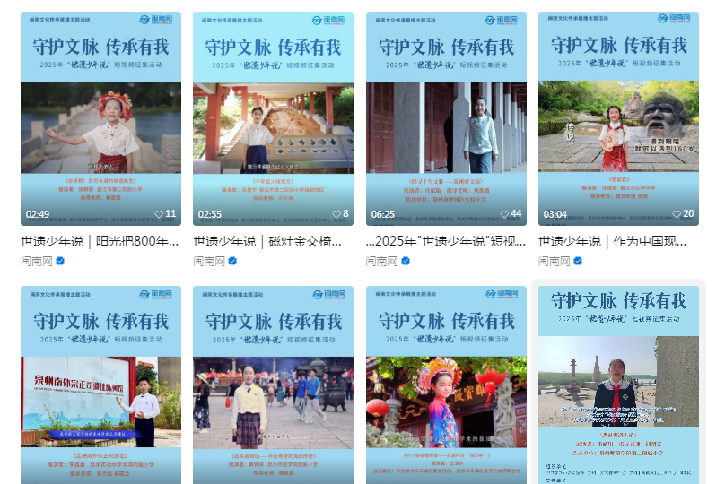 在内容传播与呈现上,“世遗少年说”精选优质视频通过闽南网全平台及文保中心视频号发布,让每一个参与活动的青少年,都能成为闽南文化、世遗文化、海丝文化、红色文化的“传播者”与“代言人”。同时,闽南网开设“世遗新声”专栏,聚焦基层文化传承故事,通过“记者探访+少年讲述”双视角呈现,既保证新闻真实性,又增强青少年参与感。