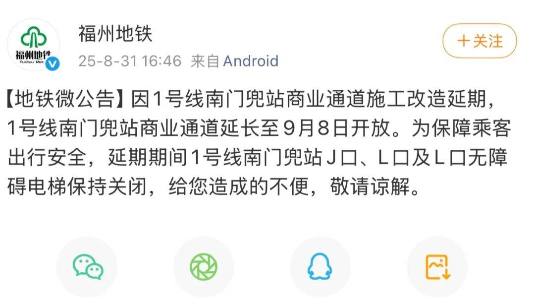 注意!福州地铁发布最新通知↓↓