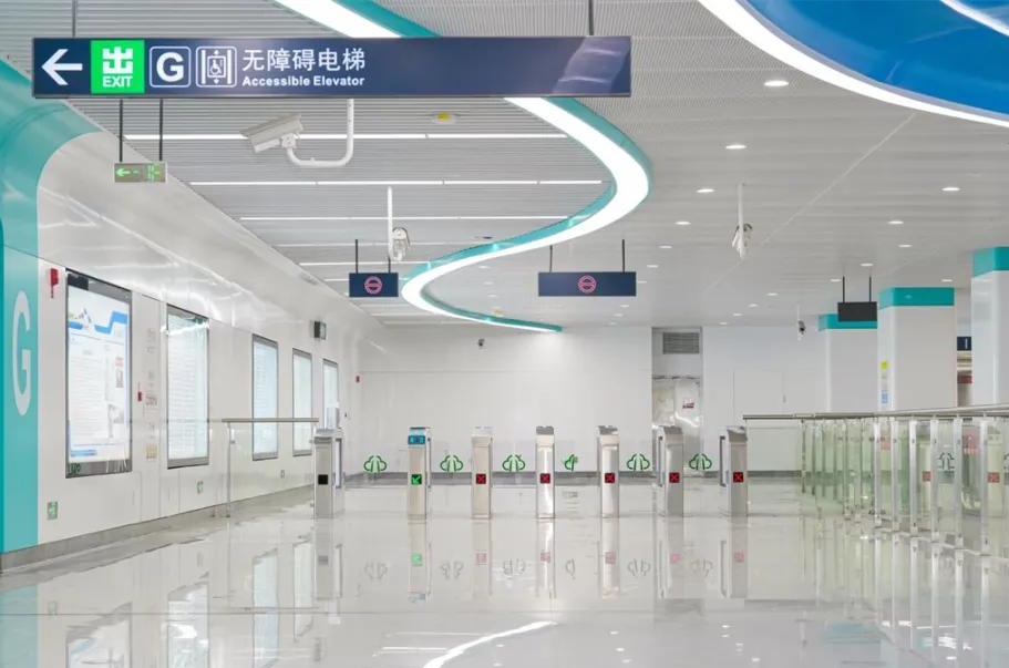 福州火车站为滨海快线第1座车站,也是与1号线换乘的车站,是线路门户站点,设计采用通透式“伞形”结构,在空间吊顶中加入蓝天白云元素,贴合福州特有海丝之路气息。