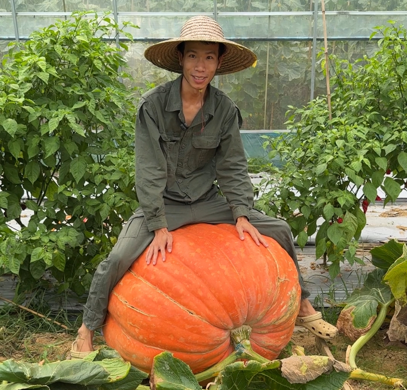 经精心测量,这颗巨型南瓜重达396斤,长约85cm,高约66cm。丰收的喜悦洋溢在张扬腾的脸上,他分享道:“这是我第三年尝试种植巨型南瓜,前两次都失败了,只能种出50多斤的南瓜。今年我总结经验,改进了种植技术,调整了施肥时间,没想到竟然成功了!”他还告诉记者,自己从小便喜爱种植新奇蔬果,除了这颗巨型南瓜之外,近期还将收获一批有超240万辣度的龙息辣椒。
