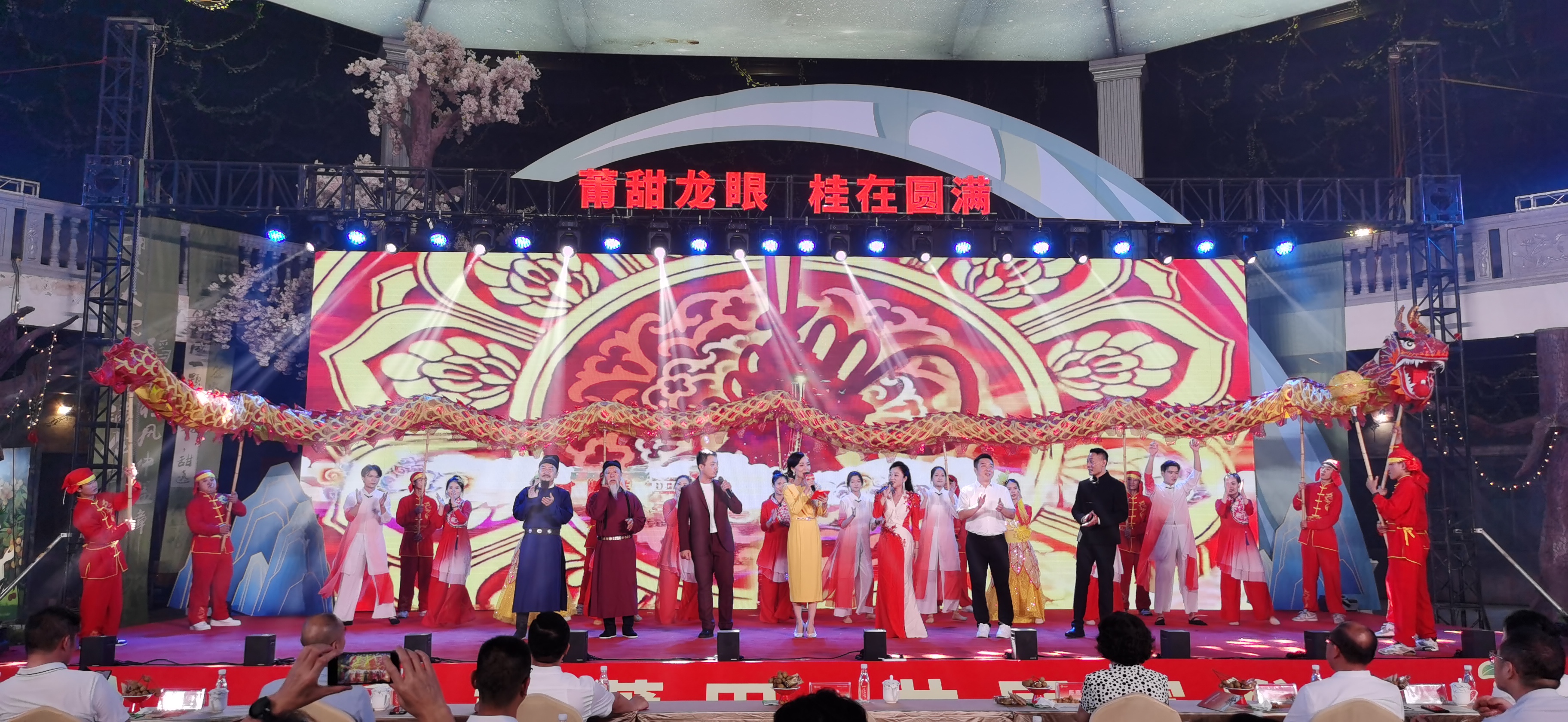 花卉世界八角楼内,激昂铿锵的锣鼓声响起,拉开了活动帷幕。开场秀《舞龙闹丰收》翻腾起舞,龙影跃动,点燃满堂喜庆;情景剧《桂乡莆甜》与宣传片《木兰溪畔·华亭好果》等节目相继登台,以莆田龙眼的人文典故为脉,全景呈现绿水青山与兴旺产业交相辉映的丰收长卷。