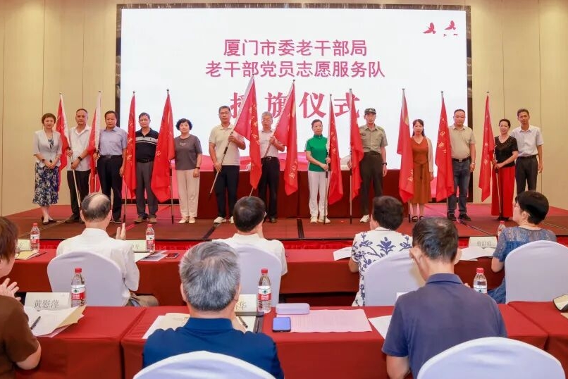 开班式上,林刚宣读了新成立的老干部党员志愿服务队名单。随后,与会领导为“厦门银发法律志愿服务队”等11支新成立的志愿服务队授旗。鲜红的旗帜象征着责任与使命,彰显了老干部党员志愿服务工作的蓬勃生机。