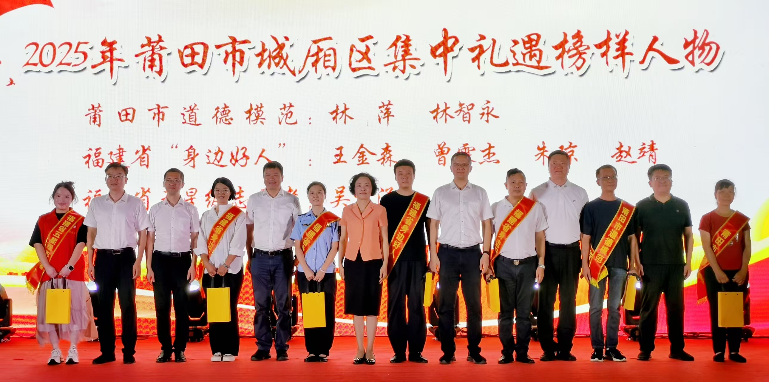 活动现场举行榜样人物礼遇仪式,莆田市道德模范林萍、林智永,福建省“身边好人”王金森、曾霖杰、朱琼、赵靖,福建省五星级志愿者吴一涵,现场接受市、区领导的关爱礼遇;为4家“日日行善”试点单位代表授匾;聘任10名人大代表、政协委员、社会爱心人士担任城厢区首批食品安全社会监督员;聘请10名外卖骑手为城厢区食品安全监督员;为城厢区首批荣获“福建省百城千家食品安全承诺单位”称号的4家企业代表颁证。