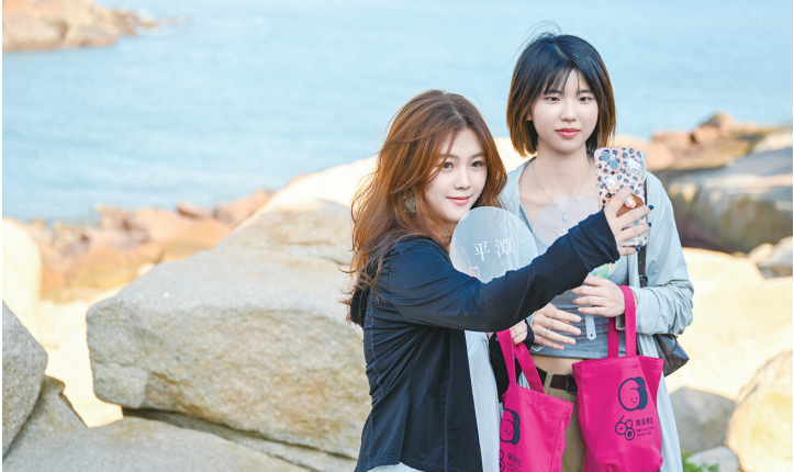 当天,在68海里景区,人手一份红色礼包成为一道新的风景线。来自广东的游客范芝熙欣喜地表示:“扇子上印有平潭地名,很有打卡意义。不仅如此,伴手礼还贴心准备了纸巾和饮品折扣券,让人觉得值回票价。”