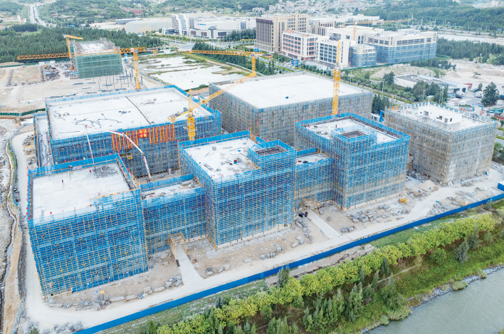 据了解,项目自开工以来,施工方采用分阶段施工、多线并进模式,分批次开展桩基工程、地下室工程、主体结构工程,推动各专业工程穿插施工,并以高效协同机制推进建设,仅历时3个月便顺利完成主体结构全面封顶,让“纸上蓝图”精准落地为“立体实景”。