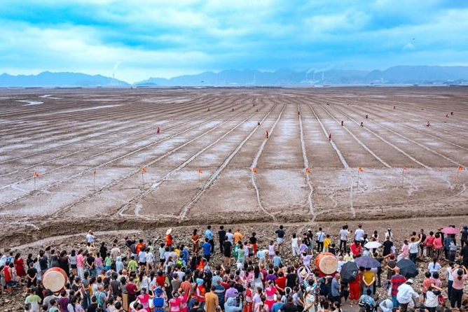 泥橇竞速比赛是此次活动的“重头戏”。泥橇又称“木马”,历史悠久,曾是戚继光抗倭的“秘密武器”,也是当地渔民“赶小海”的工具,村民常用它抓跳跳鱼、挖蛏子。