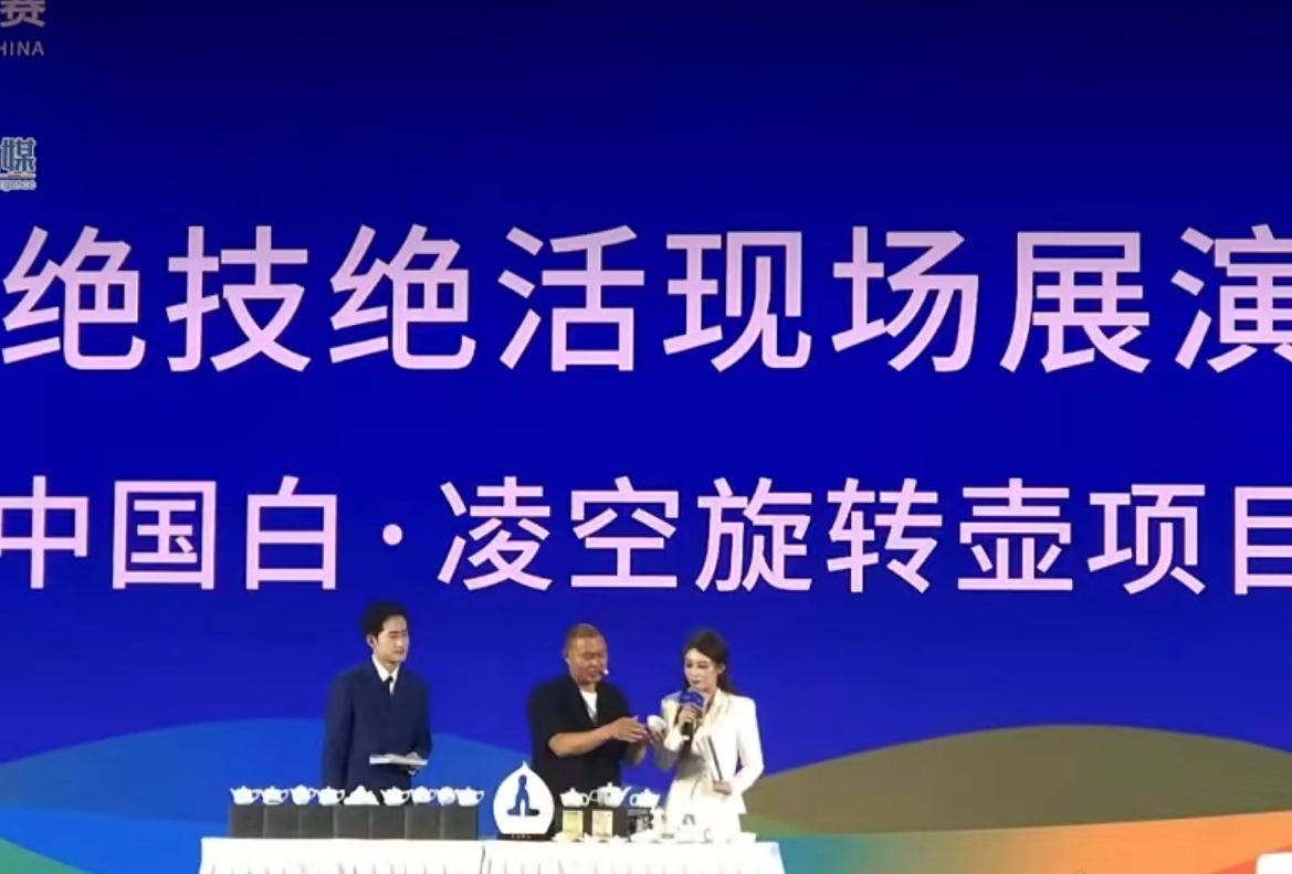 德化陶瓷匠人张节成携其研制的“中国白·凌空旋转壶”亮相“绝技绝活”展演 (部门供图)
