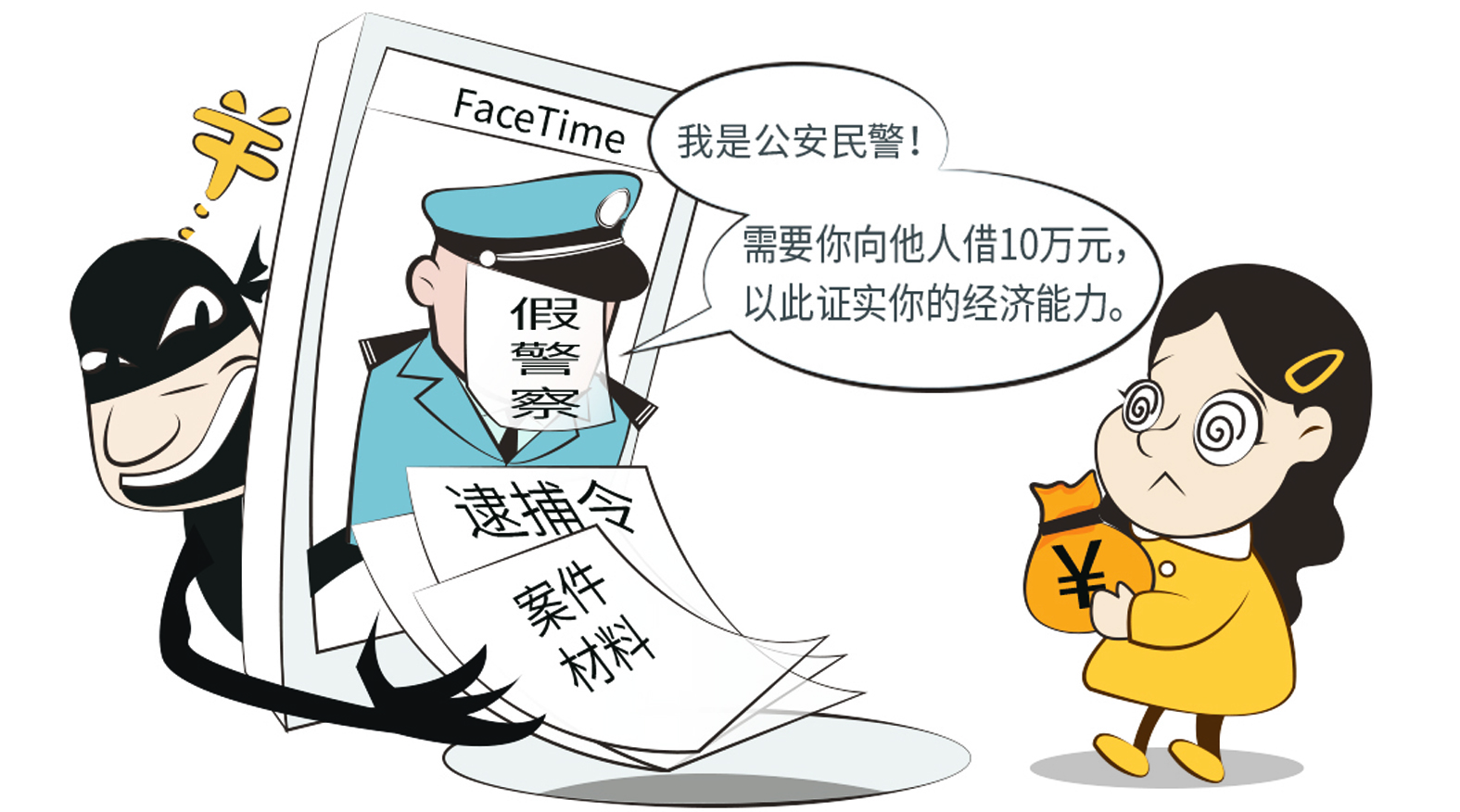 海峡导报·新福建客户端9月24日讯(记者 陈捷 曾艺轩 通讯员 黄颖/文 杨希/漫画)“我们是‘厦门公安民警’,经调查你涉嫌洗钱犯罪,请配合调查!”近期,一种以FaceTime(视频通话应用)来电为切入点,冒充公安民警施压受害者“借钱证清白”的诈骗手段卷土重来。市民小璐(化名)险些落入圈套,幸好及时与家人沟通识破骗局,才避免了财产损失。