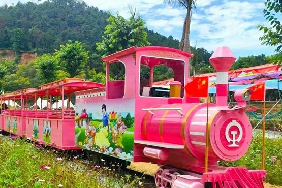 洋梓村引入卡通小火车,载着游客穿行花千谷。(石竹街道供图)