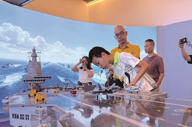 此次主题展由福建日报社、厦门金沙书院文化发展公司、福建教育出版社等联合策划,通过时间线揭开中国军舰发展的神秘面纱,集中展现中国海洋国防科技崛起,分“巨舰发展史”“中国航母时代”“福舰启航”三大板块,不仅有11个重要军舰模型、中国三大航母及福建舰舰载机模型等珍贵展品,更融入了VR虚拟现实、数屏交互等前沿技术。