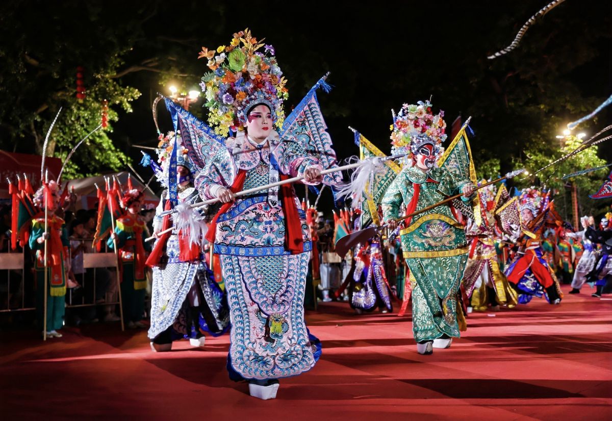 当晚,府文庙广场的泉州刣狮、潮汕英歌舞以磅礴气势擂响战鼓,宋江阵演武接连登场,一出出充满仪式感的非遗表演,不仅再现了《水浒传》的忠义精神,也展现出闽南武术文化的刚劲传承。