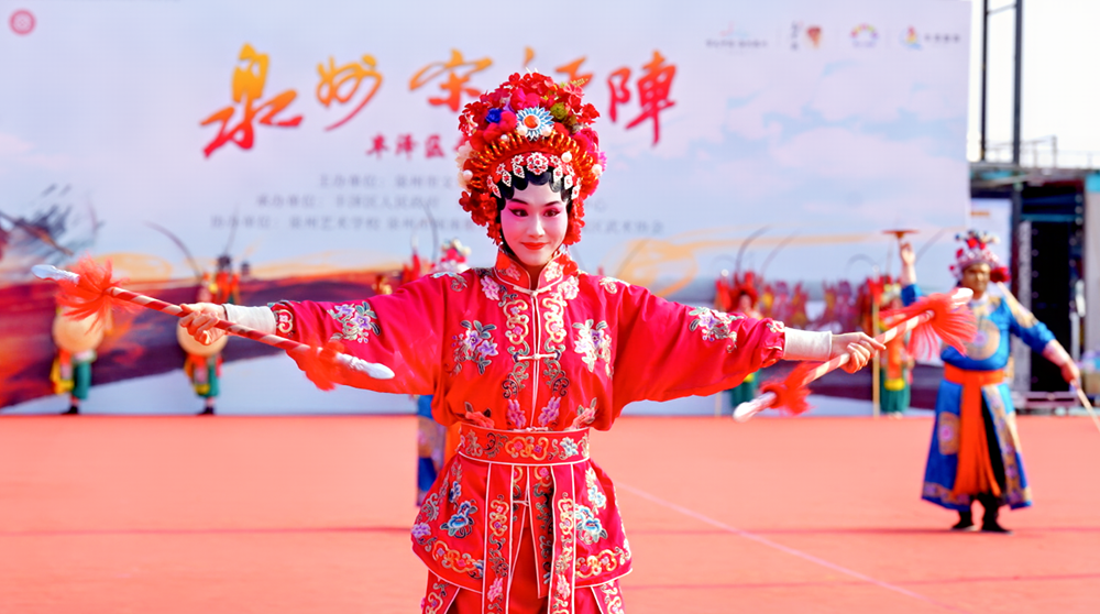 泉州宋江阵是非遗瑰宝,经过数百年的演变,从最初的 “套宋江”,逐渐发展成为集武术、舞蹈、戏曲、杂技为一体的广场表演项目,不仅为市民和游客带来精彩绝伦的视听享受,更在传承与创新中,让古老的非遗文化焕发出新的生机与活力。