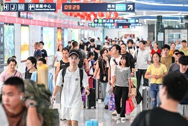 尽管人流如织,但在车站工作人员和志愿者的有序引导下,站内和车厢秩序井然。免费通行的便利和温馨的服务,化作每个人脸上轻松愉快的笑容。