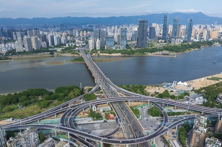 作为城区缓堵“利器”,金山大桥西互通立交与已完工的尤溪洲南立交提升改造工程、工业路(杨桥路—上浦路)提升改造工程共同组成一条快速通行的大通道,实现尤溪洲大桥、闽江大道与金山大桥之间的快速交通转换。