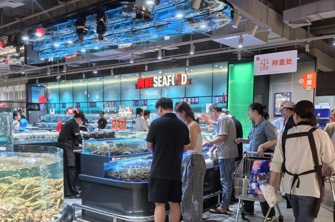 “现在超市购物环境宽敞明亮,品种丰富,节日商品价格和平时差不多,超市里就有‘海鲜厨房’,选好海鲜就能现场加工、即买即食,太方便了。”现场正在购物的市民何女士说。