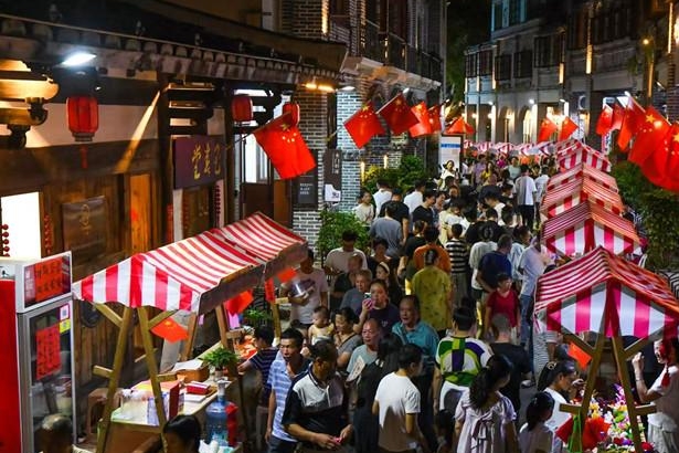 “为做旺闽清国庆旅游市场,打响‘闽都美食第一城’品牌,10月1日至5日,我们在梅城印记开展金秋美食旅游嘉年华活动。以‘夜游、夜食、夜购’的多元体验,打造丰富的假期消费场景。同时,我们在九野小镇、官圳里、漂浮公园等景区也开展了丰富多彩的各类活动。我们诚邀全国各地的游客来闽清度过一个愉快的中秋国庆假期!”闽清县文体旅局副局长丁琴说。(记者 谭湘竹)