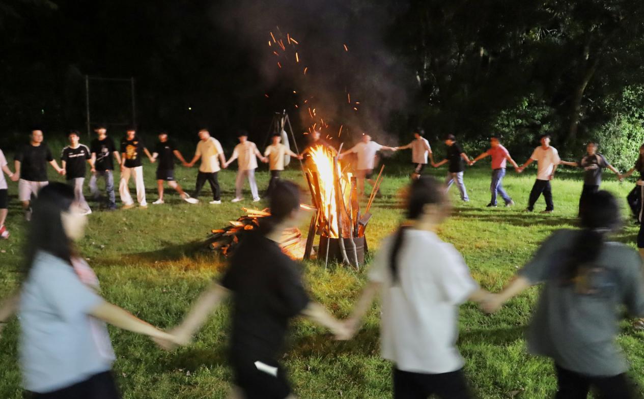 露营基地内,节日的喜庆氛围格外浓厚。璀璨的星光与跃动的篝火相映生辉,象征着国泰民安与家庭团圆。现场,诱人的烧烤香气伴随着悠扬的民谣旋律在夜空中飘散,构成了独特的感官享受。户外烧烤区人气十足,游客们亲手烤制美食,在炭火的滋滋声与欢声笑语中,体验着“自己动手,丰衣足食”的乐趣。这场融合了听觉、嗅觉与味觉的聚会,正是对林语堂先生所倡导的“生活的艺术”—让我和草木为友,和土壤相亲,便已觉得心满意足的生动诠释。