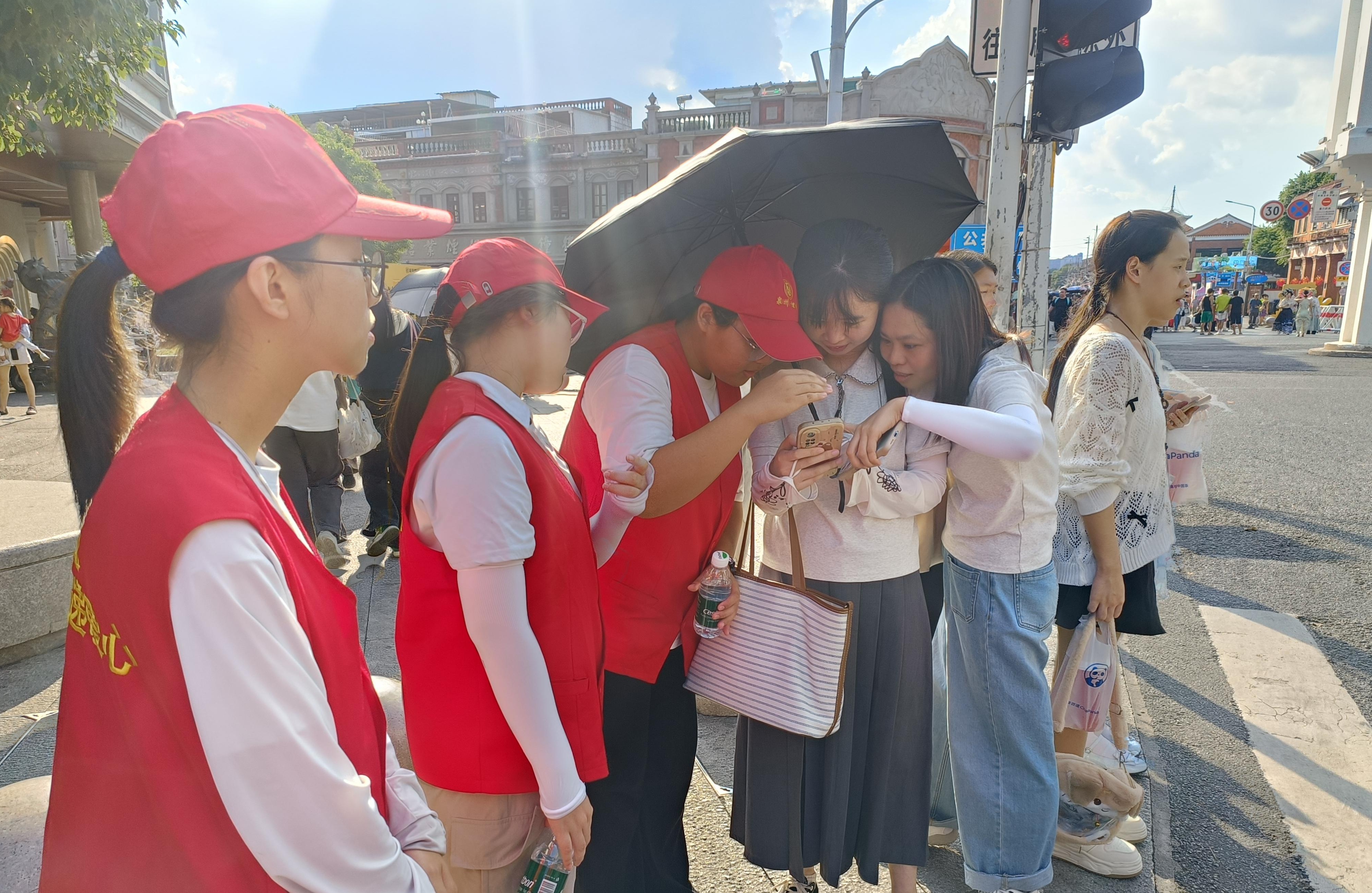 国庆中秋假期,泉州古城各世遗景点迎来客流高峰,身穿红马甲的志愿者们或驻点服务,或上路巡逻,为游客提供及时服务,为古城的文明增添一道艳丽的“志愿红”。