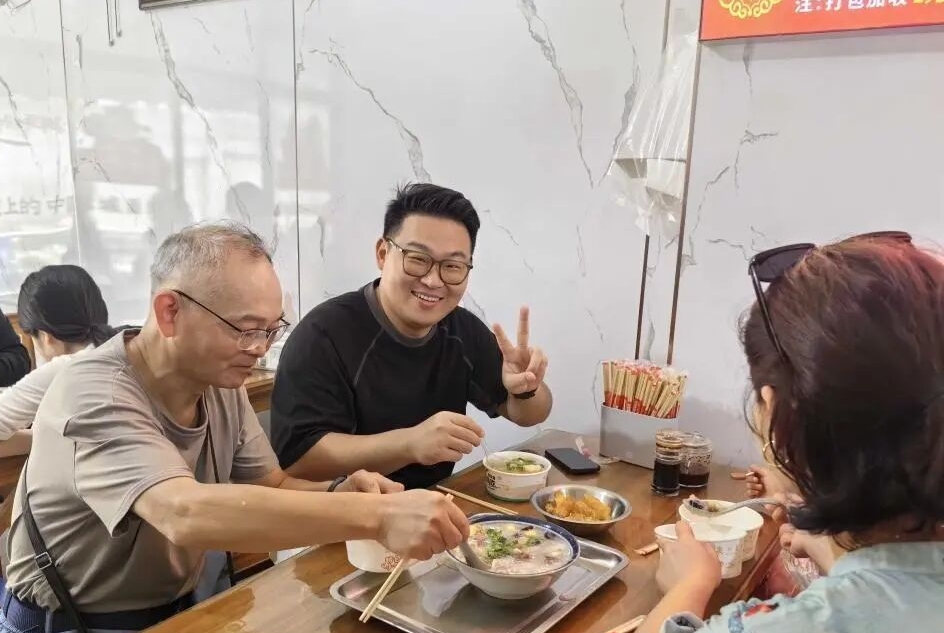 中午时分,涂门街一家牛排馆内同样座无虚席。“终于带儿子吃上他心心念念的这家店了,牛排卤得非常入味,肉质软烂又不失嚼劲,汤汁浓郁特别下饭。”来自温州的黄先生笑着说。他13岁的小儿子早在电视上看过这家店牛排的制作过程,十分向往。趁着国庆假期,他们一家四口专程前来打卡。“实在太好吃了,我们打算继续探索,把其他还没尝过的美食也吃个遍。”