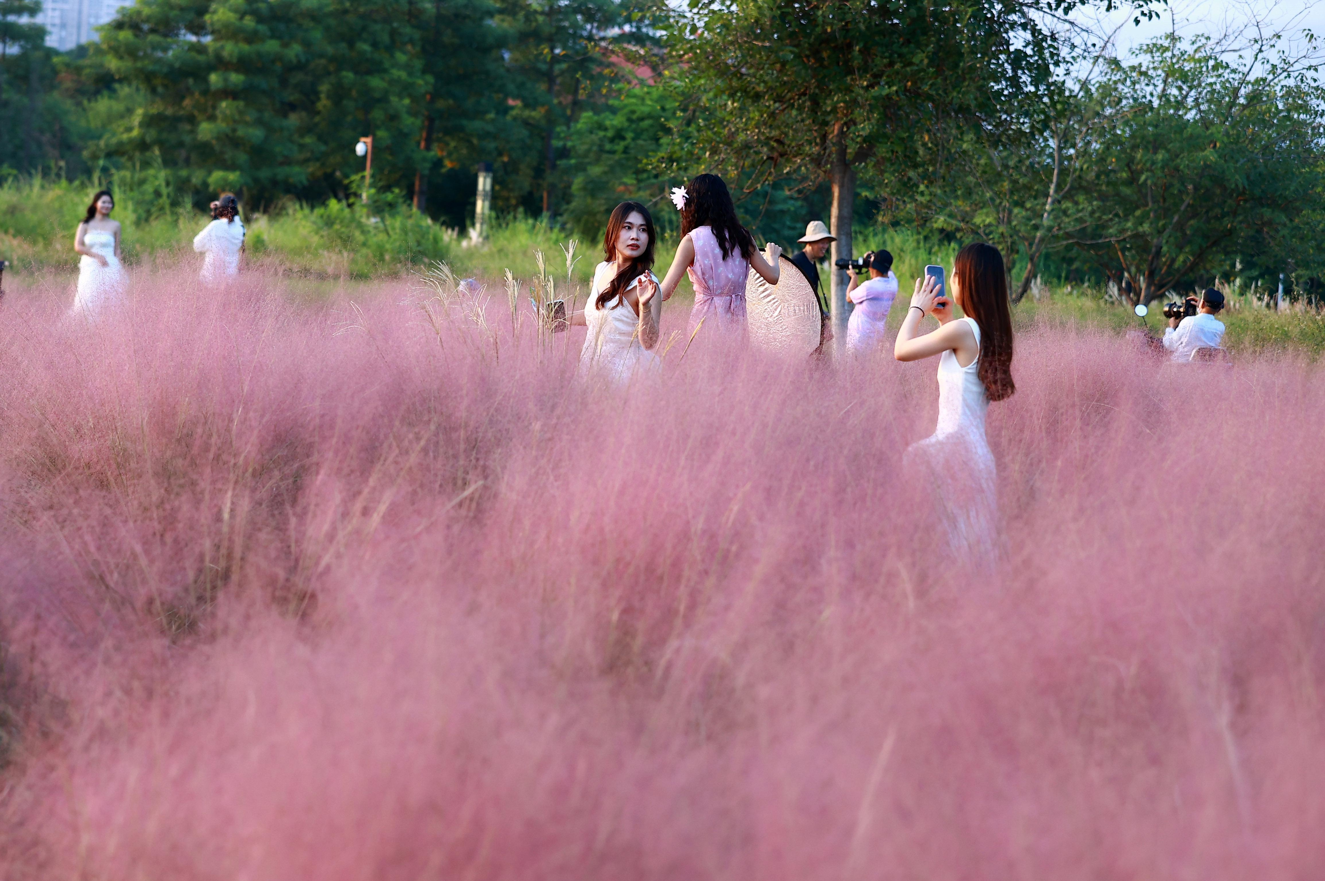 随便拍都是美景。粉黛乱子草无疑是摄影爱好者的天堂。摄影师、市民纷纷举起手机或相机,捕捉梦幻般的画面。有的蹲下身,以低角度拍摄花穗的特写;有的站在高处,记录下整片花海的壮丽;还有的穿着浅色衣裙,在花海中摆出各种姿势,留下最美的瞬间。在社交媒体上,北滨江公园的粉黛乱子草话题热度持续攀升,无数人分享着这片粉色花海带来的惊喜与感动。