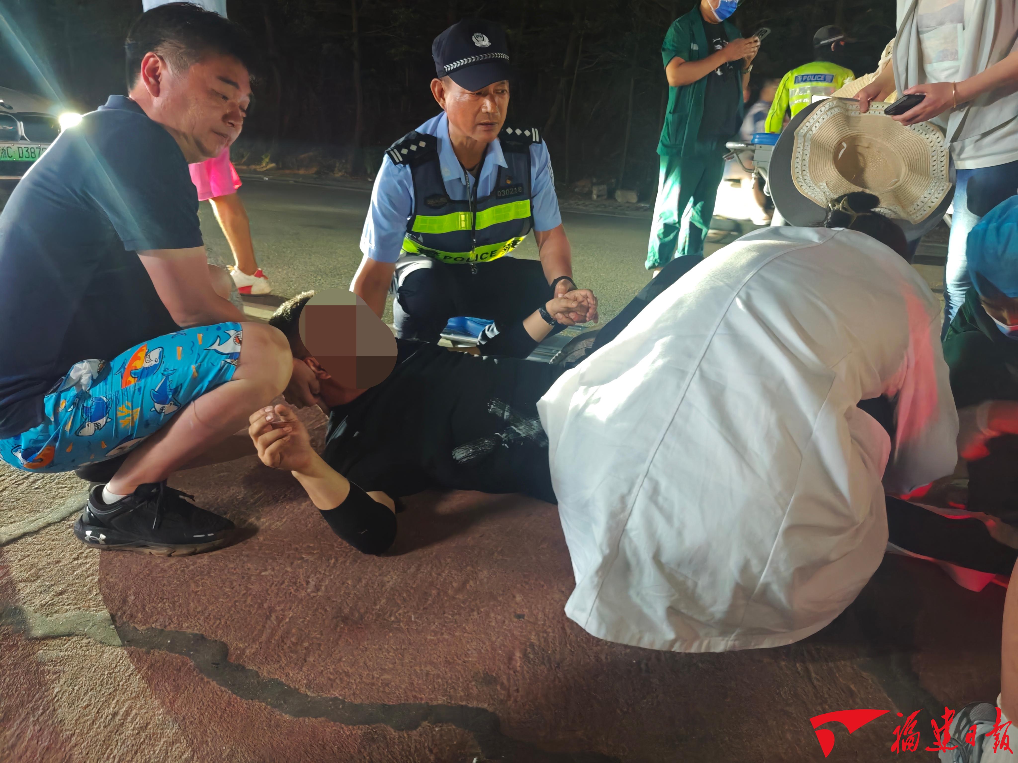民警当即分工处置工作:一方面快速疏散围观群众,在现场划定临时隔离带,引导行人和车辆有序通行,避免二次事故;另一方面,蹲在游客身边轻声安慰,“别乱动,我们已经打了120了,医护人员马上到。”同时仔细观察伤情,避免盲目移动加重伤害。