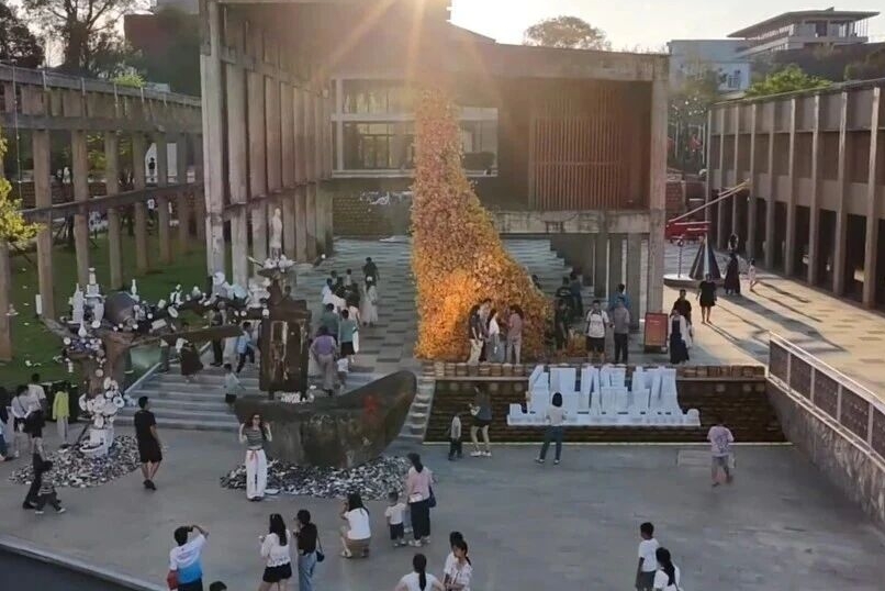 与此同时,经过修缮改造的老瓷器厂摇身一变成为文旅新地标。红砖灰瓦的厂房、矗立的四根老烟囱,吸引了不少游客专程自驾前来“打卡”。在蓝天白云下,陶瓷与工业遗存的结合,不仅彰显艺术气息,也展现出德化文化传承与创新的独特路径。