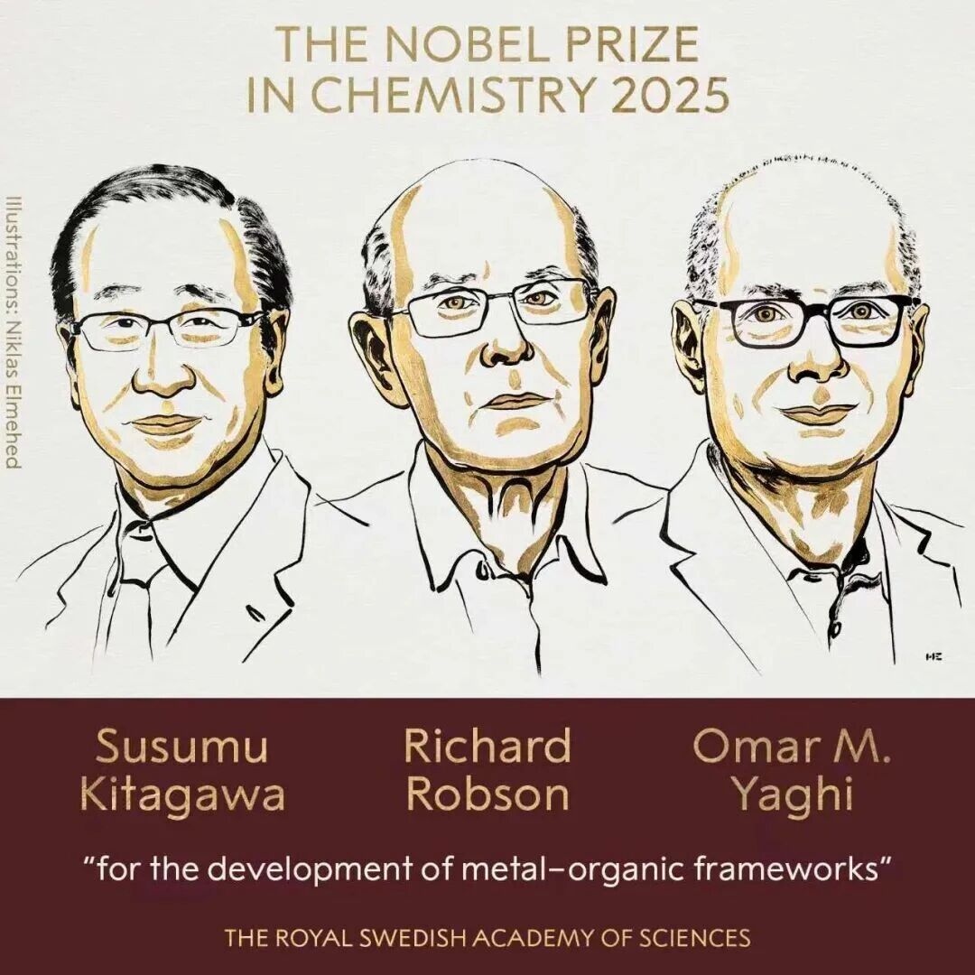 当地时间10月8日11时45分,2025年诺贝尔化学奖公布,授予北川进(Susumu Kitagawa)、理查德·罗布森(Richard Robson)和奥马尔·亚吉(Omar Yaghi),以表彰“他们对金属-有机框架的发展”。