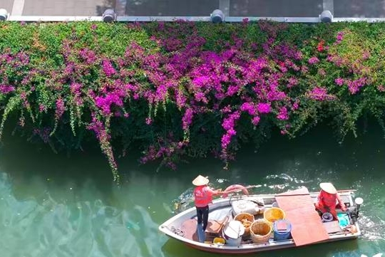 空中无人机巡河,水面电动船保洁,岸边新能源照明……