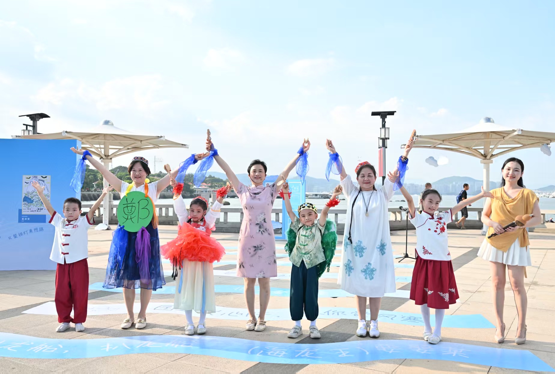 现场,海浪声、童谣声与欢笑声交织。游客穿梭“飘浮的画廊”,在“时光之门”前留影,于地面诗行间寻觅乡音,在多元互动中感受闽南文化魅力,实现文化传承与旅游体验深度融合。